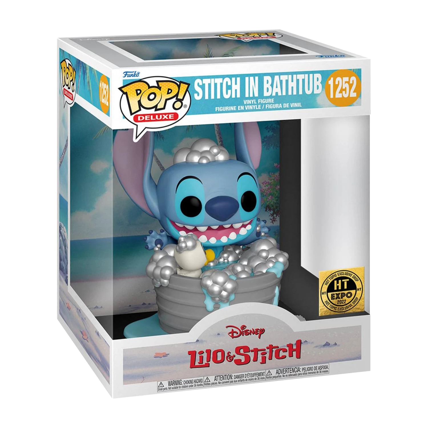 Funko Disney Lilo & Stitch Pop! Deluxe Stitch In Bathtub Vinyl Figure 2022 HT Expo Exclusive. Get ready to make a splash with your favorite experiment! This exclusive Pop! Deluxe Stitch in Bathtub is just waiting to rub-a-dub-dub into your Funko collection. He’s squeaky clean and ready to come home with you, today!