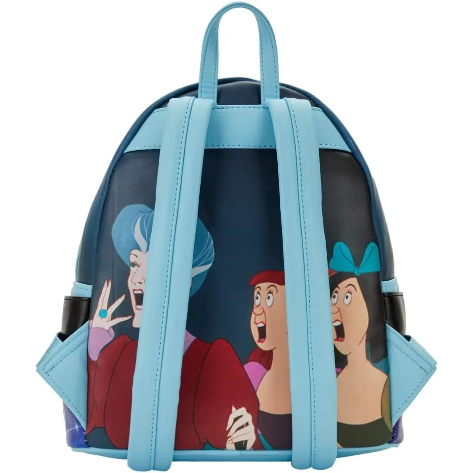 The Loungefly Cinderella Princess Scenes Mini Backpack is made of vegan leather (polyurethane). Bag has adjustable shoulder straps and sturdy metal hardware. Additional features include printed and enamel zipper charm details. Notice the coordinating inside lining.