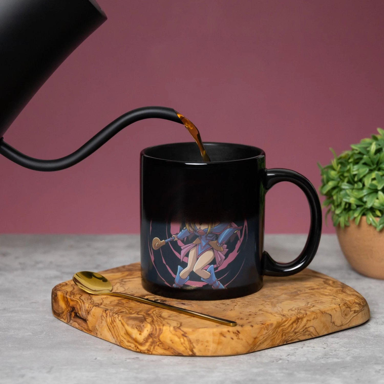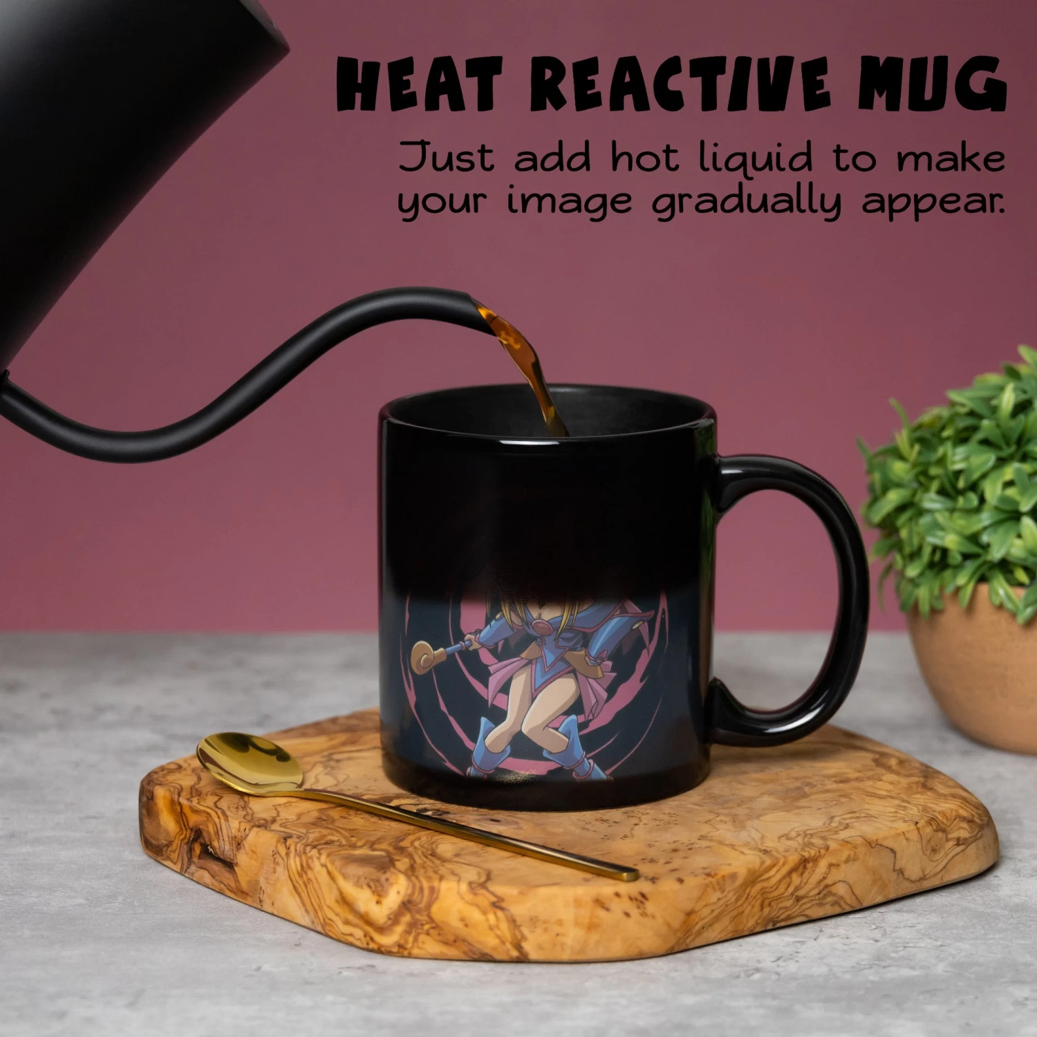 YU-GI-OH Yugi and Dark Magician Girl 15 oz. Heat Change Ceramic Coffee Mug. Add hot Liquid to witness the summoning of dark magician Girl Yugi Signature monster.